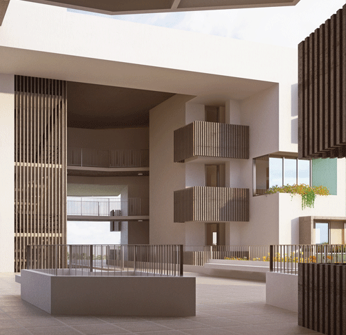 - Parking basement designed as sunken stilt for natural light and ventilation